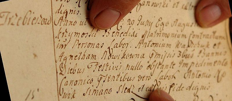 Księga urodzonych i małżeństw, 1729 -1744 1732 rok, akt nr 14 29.06 - Antoni Wajszczuk i Agnetha Nowikówna - ślubu udzielił wikariusz Augustyn Krzymowski, świadkowie - Antoni Nowik i Szymon Śledż - reszta wpisu to formy zwyczajowe.
