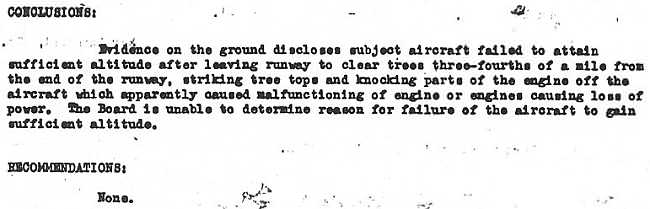 3/4 mili od końca pasa startowego, uderzył w czubki drzew (...) uszkadzając