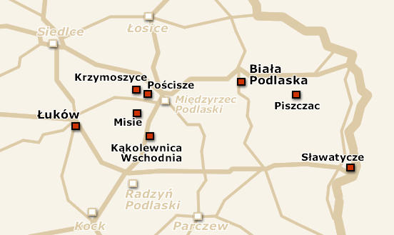 The map of travels around PodlasieŁuków, Krzymoszyce, Kąkolewnica, Misie, Pościsze, Piszczac, Sławatycze, Biała Podlaska